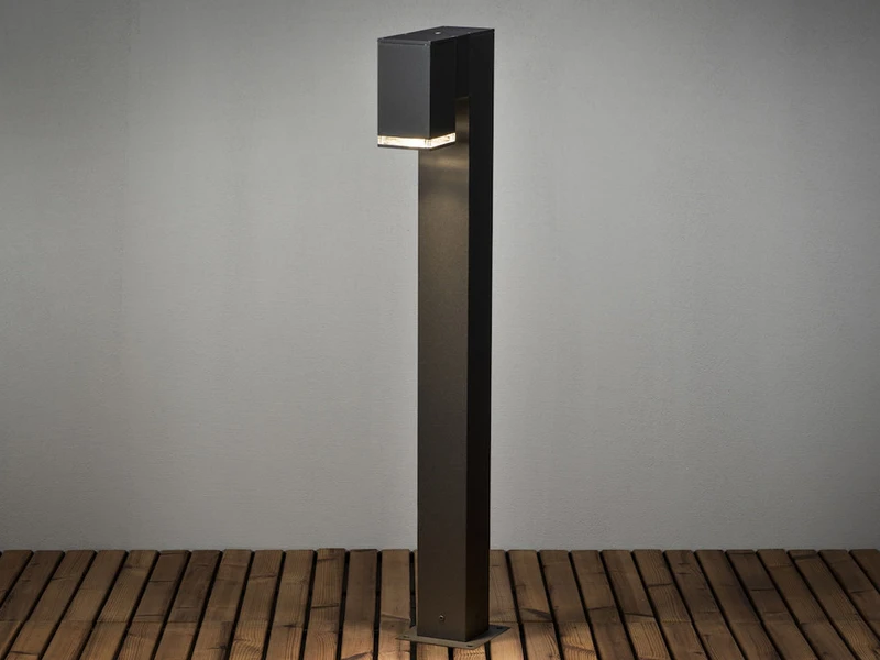 Gefertigt ist die 100cm hohe Außenleuchte aus schwarzem Aluminium und ist mit ihrer Schutzklasse IP44 für den Außenbereich geeignet.