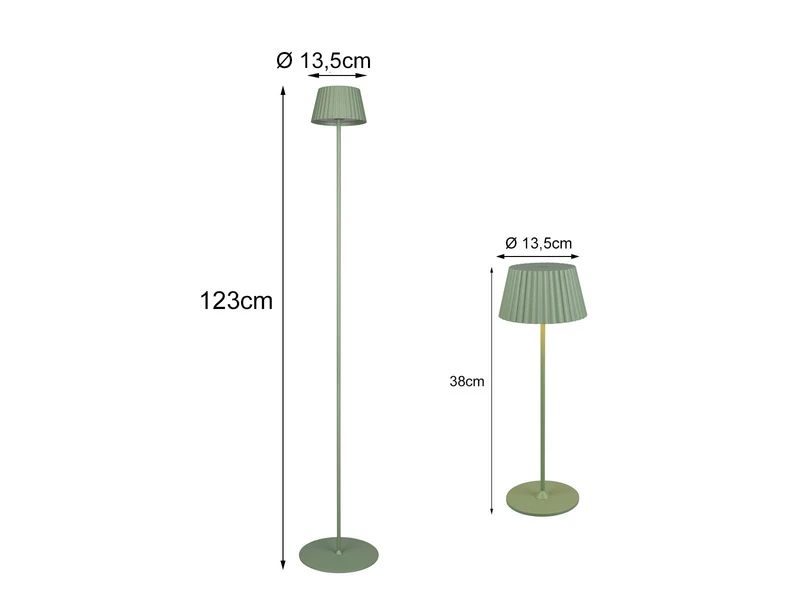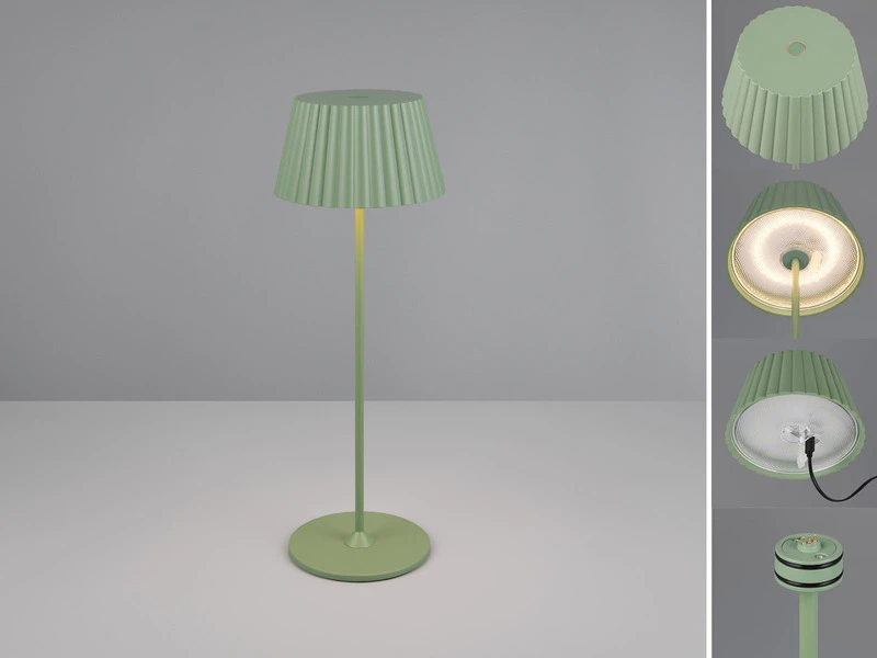 Die charakterstarke Leuchten mit Akkubetrieb machen dank der Schutzart IP44 gleichermaßen im Außen- sowie im Innenbereich eine gute Figur! Ihr schlichtes Design in Grün setzt dekorative Akzente mit Wohlfühlcharakter.