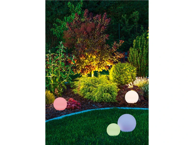 Platzieren Sie die Kugelleuchten einfach da, wo Licht benötigt wird. Die runden Solarleuchten sorgen durch den integrierten RGBW-Farbwechsler für ein stimmungsvolles Ambiente und einladende Lichtakzente rund ums Haus. Die Steuerung erfolgt über einen Schalter an der Leuchte und der beiliegenden Fernbedienung.