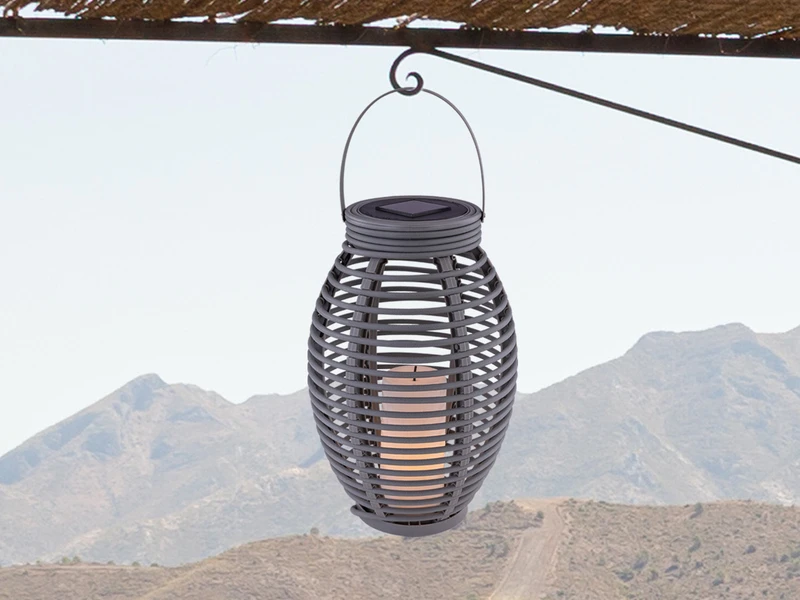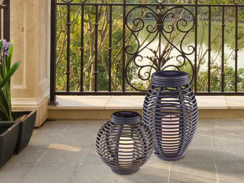 Die Rattanoptik verleiht den Außenlaternen einen natürlichen Look, der perfekt zu jedem Garten oder jeder Terrasse passt. Sie sind aus robustem Kunststoff in Grau und Taupefarben gefertigt und daher perfekt für den Außeneinsatz geeignet.