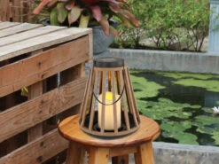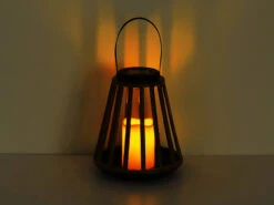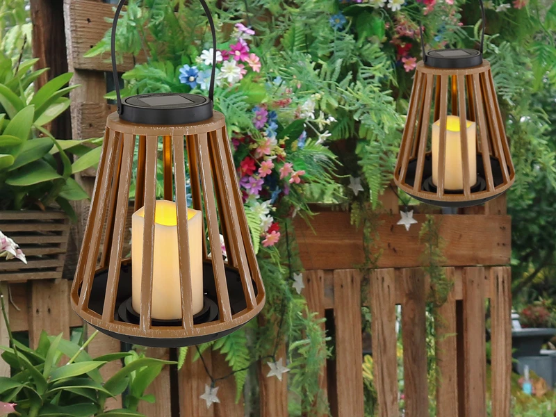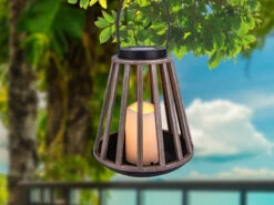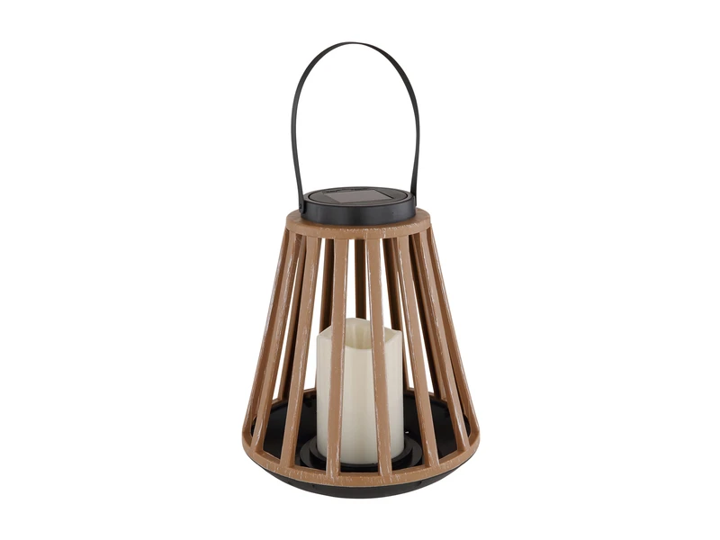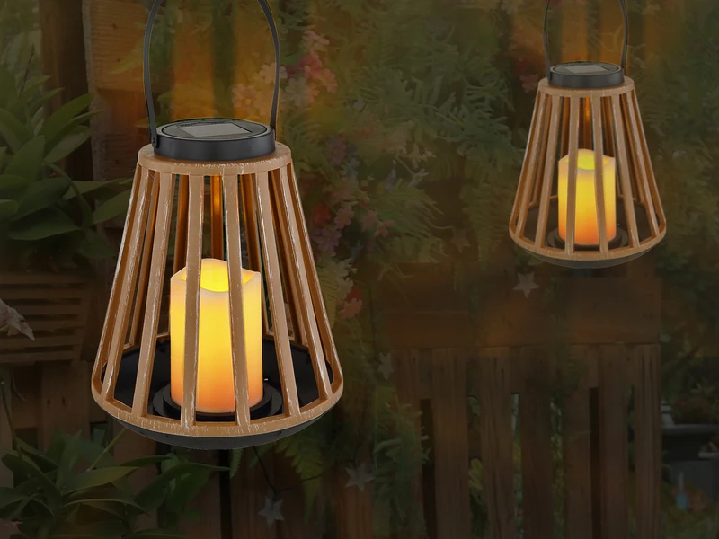 Diese ausgefallenen Solarleuchten begeistern durch Ihr schönes Design. In einem KĂ€fig mit Holzoptik (Ă20cm) befindet sich eine weiĂe LED-Kerze, welche ein 3200 Kelvin warmes Licht ausstrahlt und somit fĂŒr faszienierende Lichtspiele und eine angenehme AtmosphĂ€re sorgt.