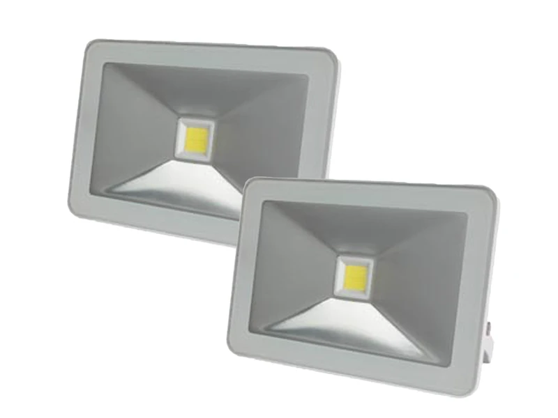 Gefertigt sind die Strahler aus robustem, weißem Aluminium. Mit ihrem schlanken Design nehmen sie auch an beengten Stellen wenig Platz ein. Die LED Scheinwerfer sind gerade einmal 3,5 cm dick und haben ein Außenmaß von 13 x 9 cm. Dennoch überzeugen sie mit einer starken Leistung von jeweils 10 Watt und 1000 Lumen in Neutralweiß.