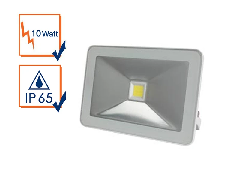 Perel 10 Watt LED Strahler ALU, 3000 Kelvin Warmweiß, IP65, 9x13cm