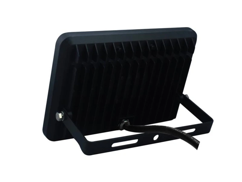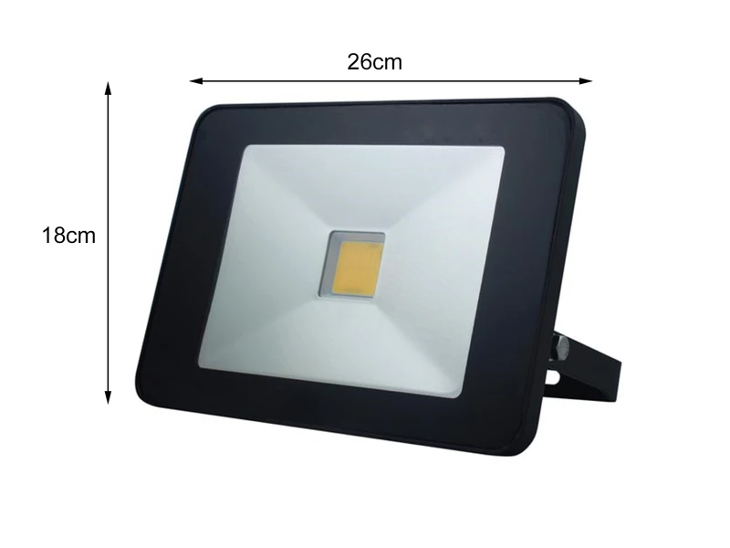 Gefertigt ist der Strahler aus robustem, schwarzem Aluminium. Mit seinem schlanken Design – der LED Scheinwerfer ist gerade einmal 4 cm dick und hat ein Außenmaß von 26 x 18,2 cm – nimmt er wenig Platz in Anspruch und überzeugt dennoch mit einer enorm starken Leistung von 50 Watt in Neutralweiß. Das Neoprenkabel erlaubt durch seine Länge einen Arbeitsradius von 50 cm.