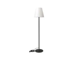 Die trendy Designleuchte mit robustem Standfuß aus Stahl und trapezförmigem Lampenschirm aus weißem Kunststoff, sorgt für eine stilvolle Beleuchtung, und kann sich auch im ausgeschalteten Zustand als Designobjekt sehen lassen.