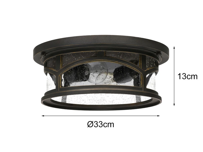 QUOIZEL Ultra Wetter & Salzluft Resistente Außen Deckenleuchte MARBLEHEAD, Bronze Ø33cm