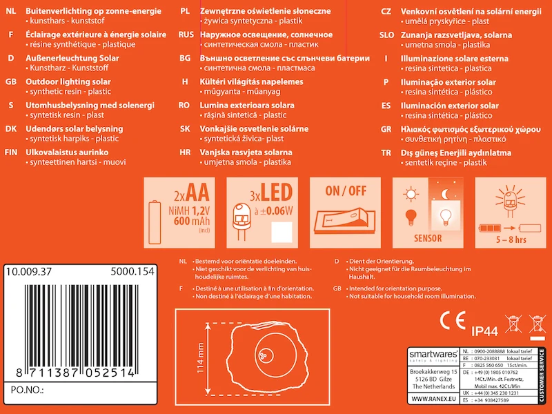 Der eingebaute Akku wird am Tag über die integrierte Solarzelle geladen und versorgt bei Dunkelheit den Stein mit notwendigem Strom. Bei vollem Akku ca. eine Leuchtdauer von 5-8 Stunden