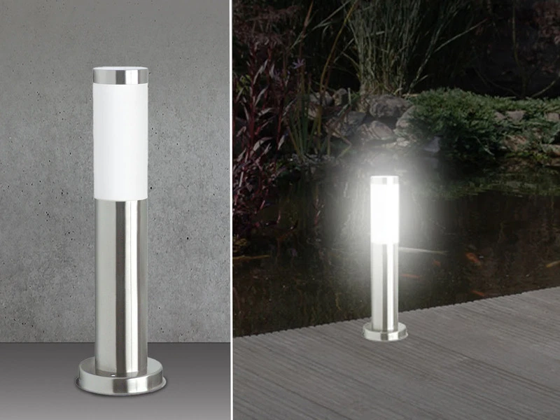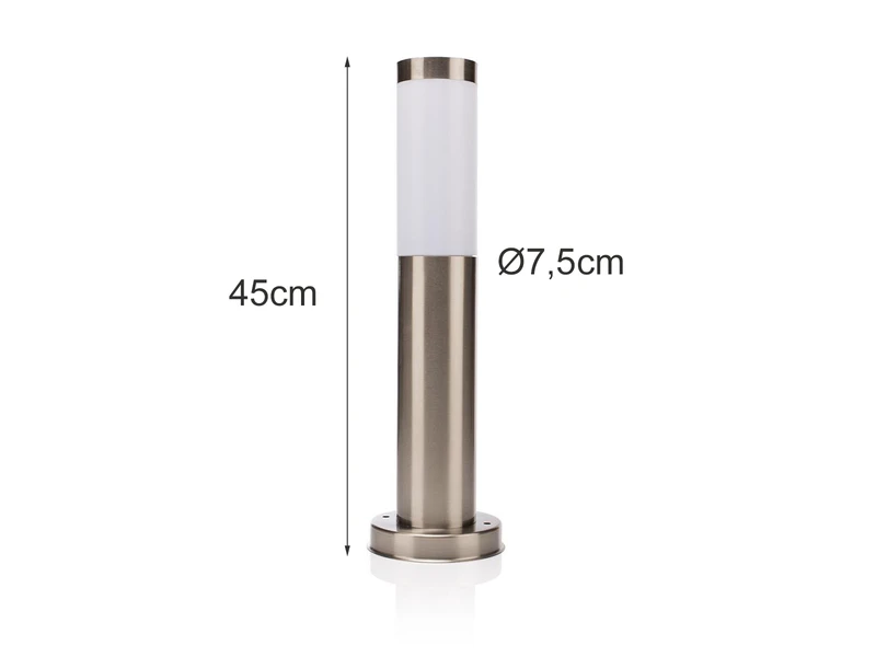 Mit einer Höhe von 45 cm sowie einem Durchmesser von 7,5 cm (Sockelplatte Ø 13cm) ist die Sockelleuchte auch bei der Gartengestaltung sehr gut als dekorativer Gartenpfosten oder Wegeleuchte geeignet.