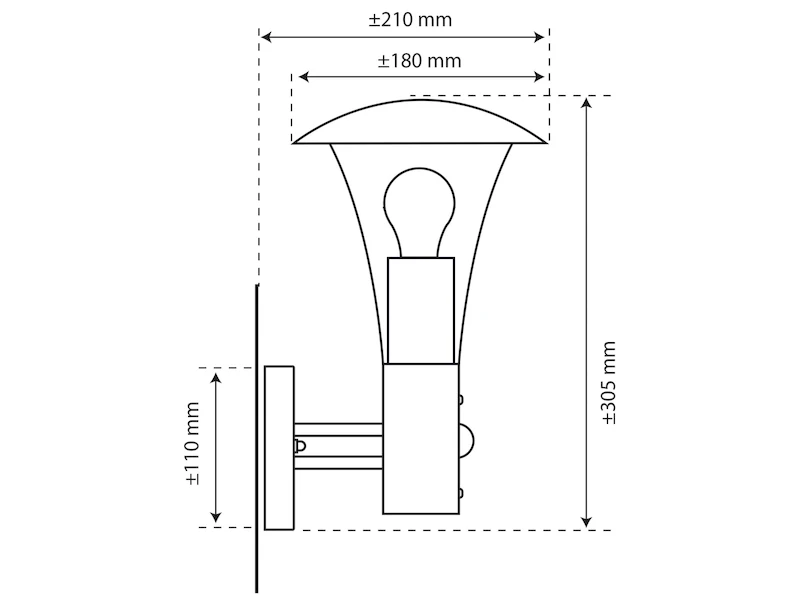 Mit Leuchtmitteln bis max. 60W bestückbar. (Nicht im Lieferumfang enthalten.)