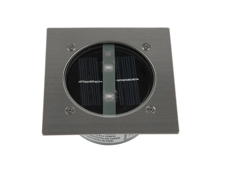 Ausgestattet wurde der Bodenstrahler mit 2 x AAA 600mAh NiMh Akkus, welche vor Einbau mittels externen Ladegerätes aufgeladen werden können. Am Tage werden die Akkus durch Sonnenenergie aufgeladen und Nachts schaltet sich der Bodeneinbaustrahler dank des Tag/Nacht-Sensors automatisch ein.