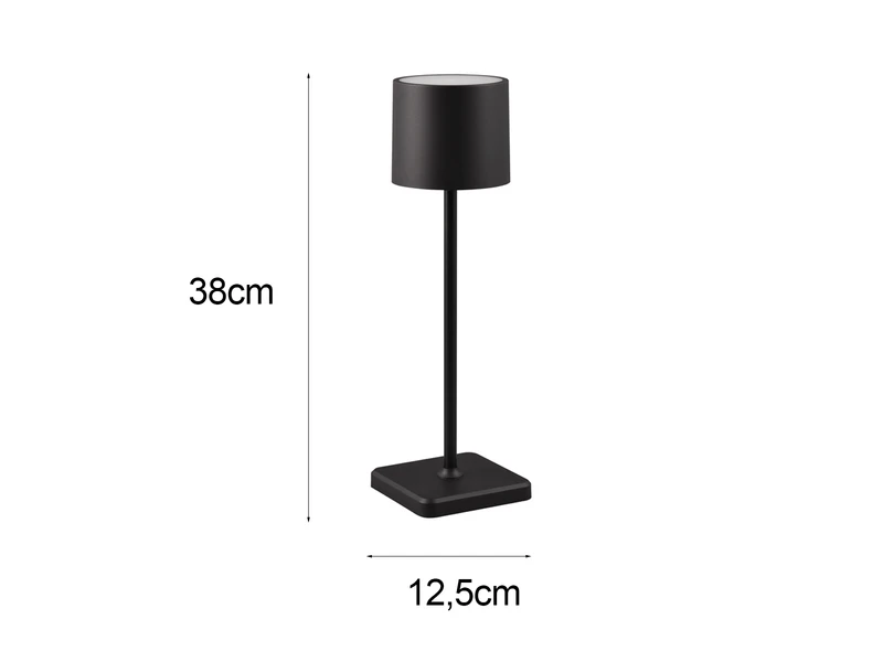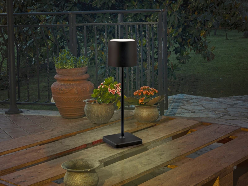 Die 38cm hohen Leuchten aus schwarzem Kunststoff sind über die mitgelieferte Ladestation (Station mit USB-C Kabel) ganz einfach aufladbar und kommen überall dort zum Einsatz, wo ein Stromanschluss fehlt.