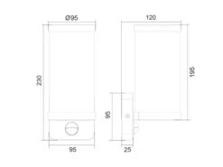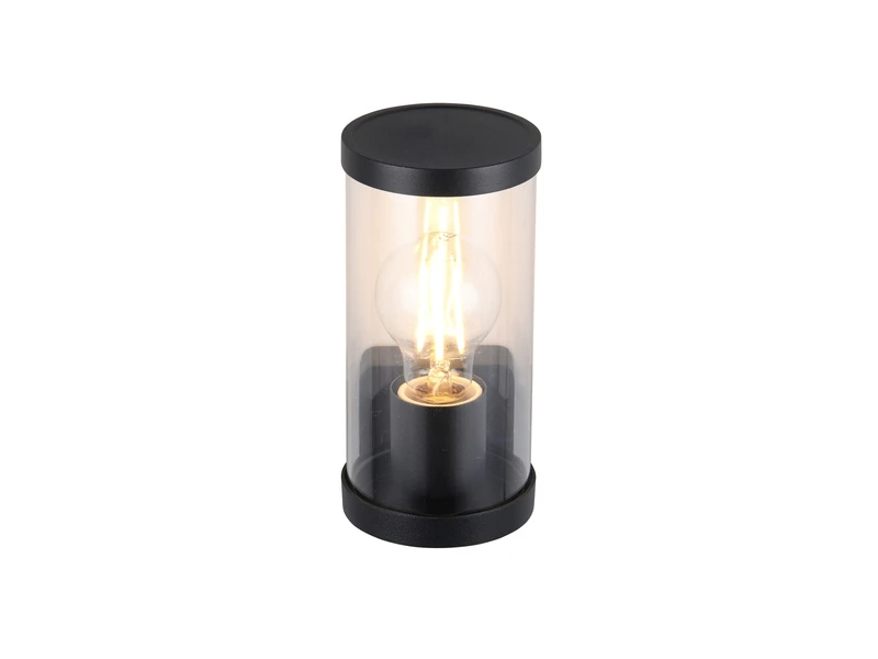 Die 23cm hohe Außenlaterne ist aus Druckgussaluminium in Schwarz und klarem Acrylglas gefertigt und ist mit der Schutzklasse IP44 für die Anwendung in Außenbereichen geeignet.