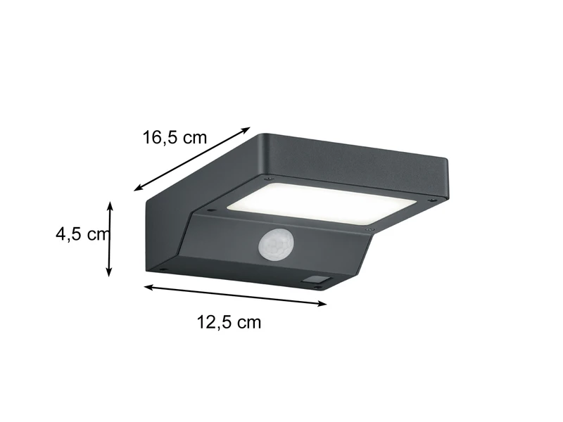 Gefertigt ist die Wandlampe aus wetterfestem Kunststoff in Anthrazit und dank Schutzart IP44 kann sie in fast jedem Outdoor Bereich zur Fassadenbeleuchtung eingesetzt werden, z.B. als Außenbeleuchtung für Ihren Eingangsbereich, als Terrassenbeleuchtung oder auch als Wegeleuchte an Ihrer Gartenhütte.