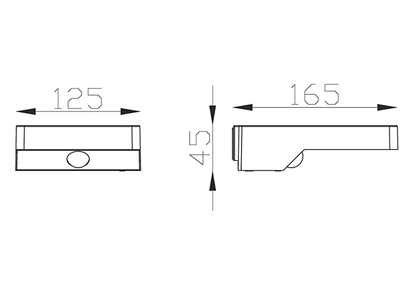 Bei einer Breite von 12,5 cm und einer Höhe von nur 4,5 cm hat sie eine Ausladung von 16,5 cm.
