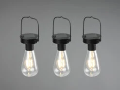 In moderner Form und Farbe sorgt die kleine Leuchte im 3er SET zum aufhängen für schöne Lichtakzente und ein gemütliches Umfeld. Dank des Solarpanels kann das Licht der Sonne eingefangen und in Strom umgewandelt werden. So haben Sie die Möglichkeit die kleine Hängelampe ganz ohne Stromanschluss da zu platzieren, wo Licht benötigt wird.