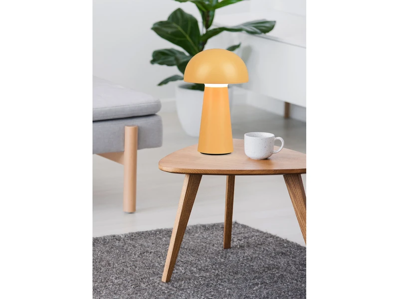 Durch die Klassifizierung IP44 ist die Leuchte vor Spritzwasser geschützt und damit auch für den Außenbereich geeignet. Durch das schlichte und reduzierte Design in Pilz Form, wird die Tischleuchte in modernem Illuminate Gelb zu einem unaufdringlichen Deko Element das besonders anpassungsfähig ist.