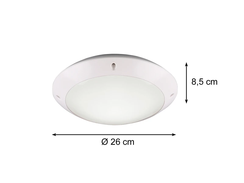 Technisch ist die Wandlampe, dank der Schutzart IP54, für so gut wie jeden Outdoor Bereich zur Außenbeleuchtung geeignet und hat eine Höhe von nur 8,5 cm sowie einem Durchmesser von 26 cm.