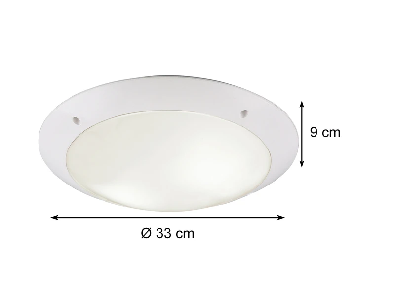 Technisch ist die Wandlampe, dank der Schutzart IP54, für so gut wie jeden Outdoor Bereich zur Außenbeleuchtung geeignet und hat eine Höhe von nur 9 cm sowie einem Durchmesser von 33 cm.
