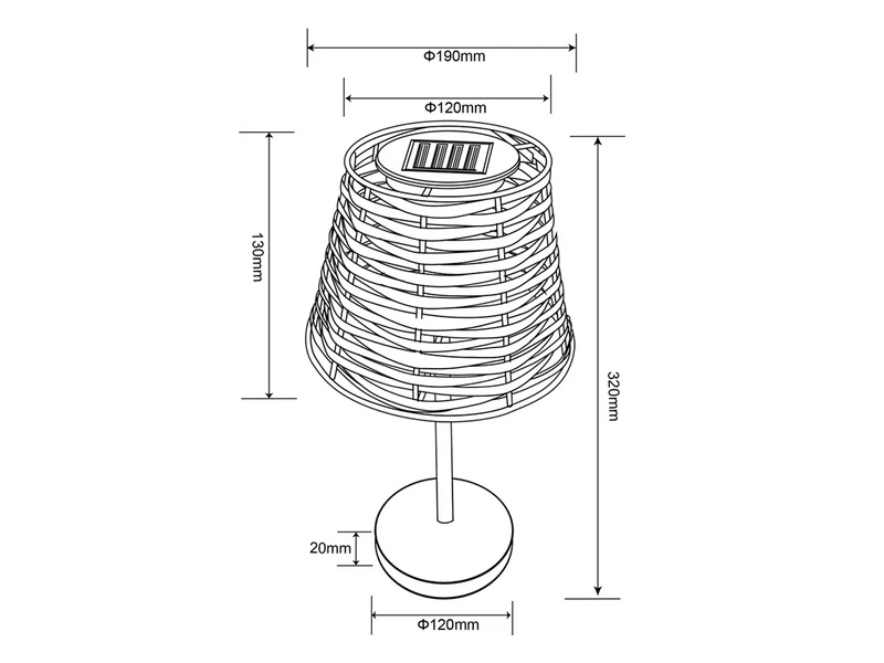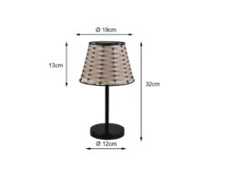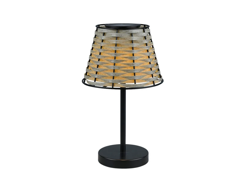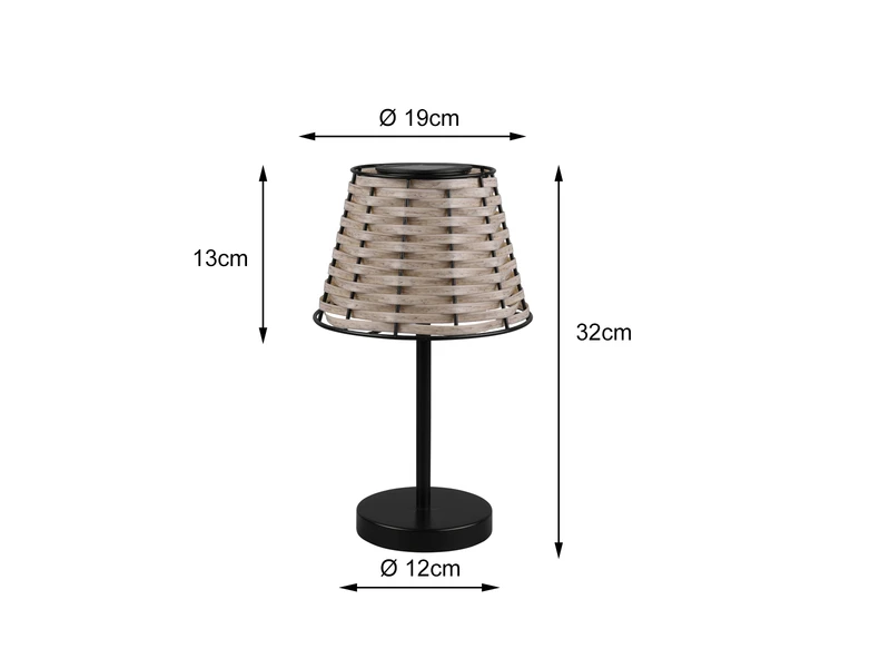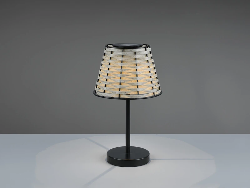 Klar, eindeutig und voll im Trend: In zeitlosem Schwarz matt gehalten passt die 32cm hohe Solar Tischlampe zu modernem Garten Mobiliar ebenso gut wie zu klassisch urigem. Die angesagte Rattan-Optik und der leicht konische Schirm mit 19cm Durchmesser sorgen fĂŒr ein angenehmes Umgebungslicht, das Ihrem Ambiente bei jeder Party drauĂen umschmeichelt.