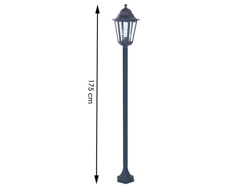 Die Außenlaterne ist mit einer E27 Fassung ausgestattet und für ein Leuchtmittel bis max. 60 Watt geeignet.