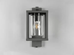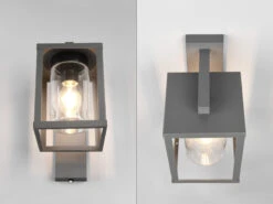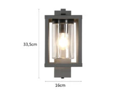 Dank des witterungsbeständigen Druckgussaluminiums und der Schutzart IP44 eignet sich die Wandleuchte zudem ideal für die Beleuchtung Ihres Außenbereichs. Die stylische Farbgebung in Anthrazit, in Kombination mit einem transparenten Glas, macht die 33cm hohe Wandleuchte zu einem echten Hingucker und sorgt für ein modernes Erscheinungsbild.