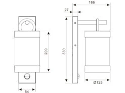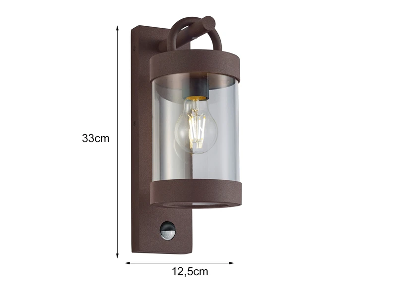 Die Wandleuchte hat eine Höhe von 33cm und eine Breite von 12,5cm. Mit einer Schutzart von IP44 kann sie in fast jedem Outdoor Bereich zur Fassadenbeleuchtung eingesetzt werden, z.B. als Außenbeleuchtung für Ihren Eingangsbereich, als Terrassenbeleuchtung oder auch als Wegeleuchte an Hauswänden.