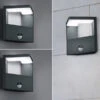 Beim Einschalten der Leuchte wird das Licht angenehm an den Außenbereich abgegeben und sorgt für ein dekoratives Lichtambiente. Der integrierte Bewegungssensor sorgt bei Dunkelheit für mehr Sicherheit rund ums Haus, denn eingebaute Sensoren schalten das Licht, bei Bewegungen in einem Erfassungswinkel von 120° und einer Reichweite von 9 Metern, automatisch ein und wieder aus.