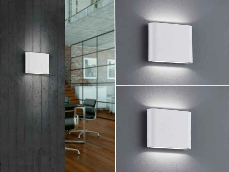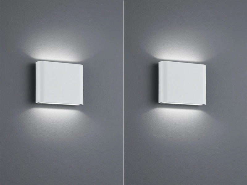 Gefertigt sind die Wandlampen aus wetterfestem Aluguss. Durch die Oberfläche in mattem Weiß wirken sie dabei besonders elegant.