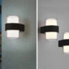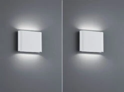 Jede Außenwandlampe ist mit zwei fest verbauten LED Modulen ausgestattet, welche mit einer Leistung von jeweils 2,5 Watt und 260 Lumen in Warmweiß für eine angenehme Beleuchtung sorgen.