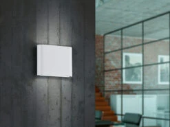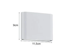 Jede Außenlampe hat eine Höhe von 9 cm, eine Breite von 11,5 cm und ist nur 3 cm tief. Mit einer Schutzart von IP54 können sie in fast jedem Outdoor Bereich zur Fassadenbeleuchtung eingesetzt werden, z.B. als Außenbeleuchtung für Ihren Eingangsbereich, als Terrassenbeleuchtung oder auch als Wegeleuchten an Hauswänden.