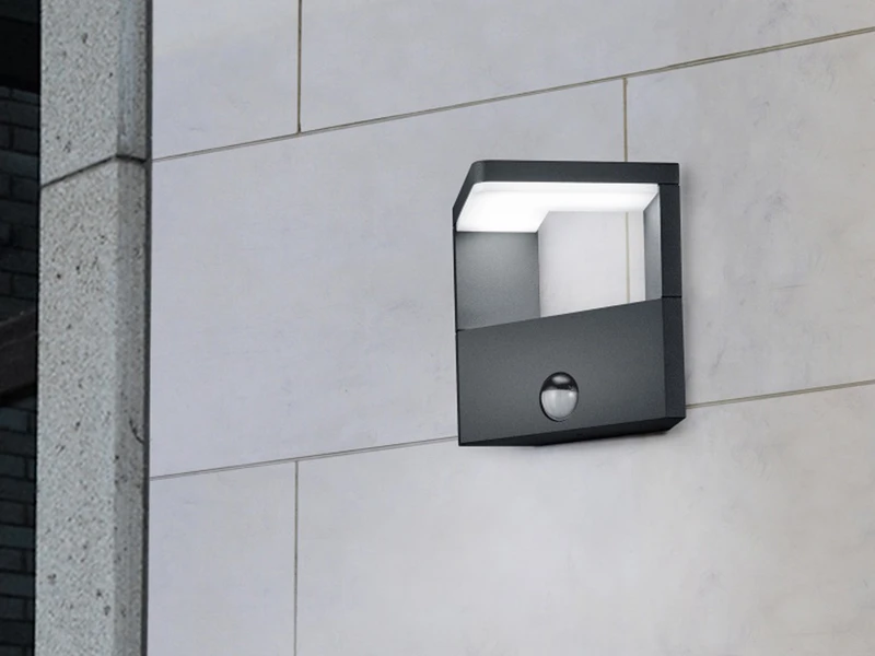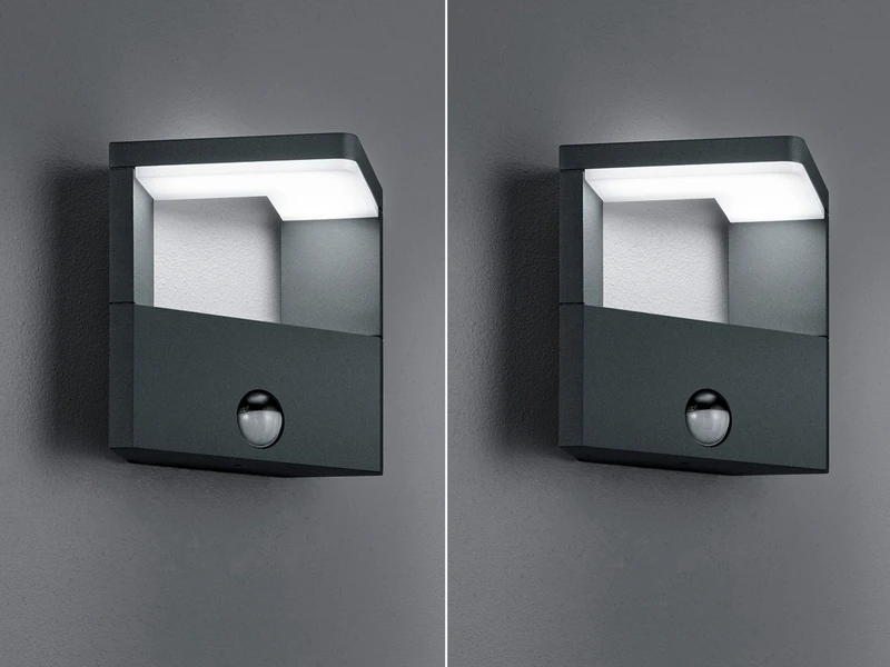 Diese zwei LED Außenwandleuchten sind mit Bewegungsmeldern ausgestattet, jeder hat einen Erfassungswinkel von 120° bei einer Reichweite von 9 Metern.