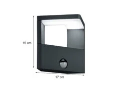 Mit einer Höhe von 15 cm sowie einer Breite von 17 cm und Tiefe von 12 cm ist die Fassadenleuchte auch bei der Gartengestaltung sehr gut als dekorative Wegeleuchte geeignet. Ihre gleichmäßig nach unten gebündelte Ausleuchtung sorgt für schönen Lichteffekte an Ihrer Hauswand .