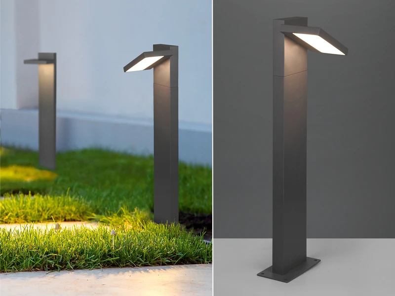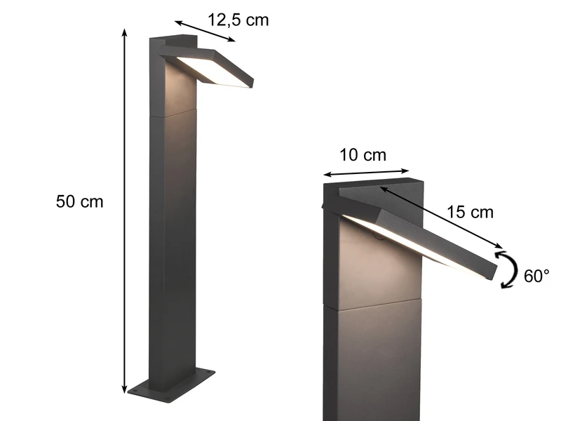 Durch Schutzart IP54 ist die Sockelleuchte optimal gegen Staub und Spritzwasser geschützt. In Kombination mit dem witterungsbeständigen Druckgussaluminium in Anthrazit eignet sich die Außenlampe ideal für die Beleuchtung Ihres Außenbereichs, im Eingangsbereich oder der Einfahrt, als Terrassenbeleuchtung oder auch als Wegeleuchte in Ihrem Garten.