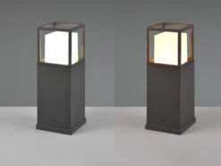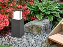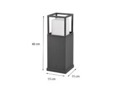 Die Außenleuchte besteht aus einem hochwertigen Druckguss Aluminium in Anthrazit sowie aus einem weißen Leuchtkörper aus Kunststoff. Mit ihrem zeitlosen Design und einer Größe von 15 x 15 cm sowie einer Höhe von 40cm passt sie sich fast jedem Outdoorbereich an.