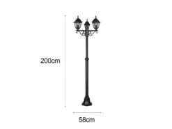 Die 200cm hohe Außenleuchte ist aus schwarzem Druckgussaluminium gefertigt und beleuchtet zuverlässig Gartenwege und Grundstücke und schafft dabei eine stimmungsvolle Lichtatmosphäre.