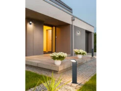 Zur DĂ€mmerung bringen uns Wandleuchten und Wegeleuchten sicher zum Haus oder der Garage, sehr schön ist die Kombination der LED AuĂenwandbeleuchtung mit dem 100cm hohen LED Pfosten sowie der 50cm hohen Pollerleuchte aus der Serie PEARL!