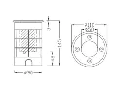 Der Spot hat einen Durchmesser von 11cm sowie eine Tiefe von 14cm. Als Einbaumaß benötigen Sie einen Ausschnitt von 9,1cm und eine Einbautiefe von 20cm für den Strahler.