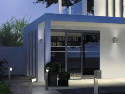 Ausgestattet mit einem fest verbauten LED mit einer Leistung von 7 Watt und 800 Lumen in warmweiß garantiert die Außenlampe effiziente Beleuchtung an Fassaden, Hauswänden und im Eingangsbereich.