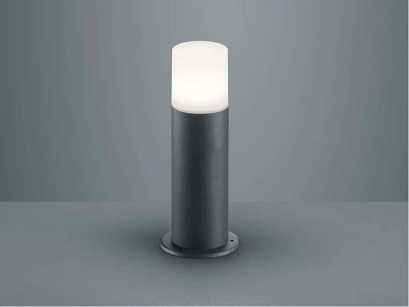 Die Sockelleuchte HOOSIC der Firma Trio Leuchten ist eine moderne AuĂenleuchte, die sich mit ihrem klassischen Design und der anthrazitfarbenen OberflĂ€che harmonisch in jeden AuĂenbereich einfĂŒgt.