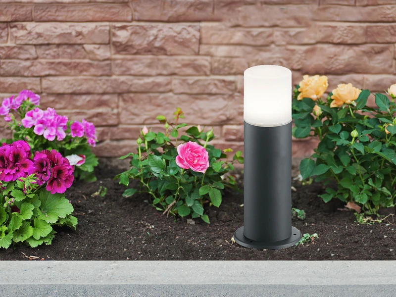 Mit einer Höhe von 30 cm sowie einem Durchmesser von 12 cm eignet sich die Sockelleuchte optimal zur Wegbeleuchtung im Garten, Eingangsbereich oder in der Einfahrt.