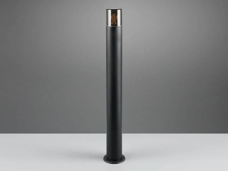 Durch das moderne Erscheinungsbild und dem geradlinigen Desing in zeitlosem Schwarz matt mit rauchfarbigem Kunststoff lässt sich die Wegeleuchte vielfältig kombinieren.