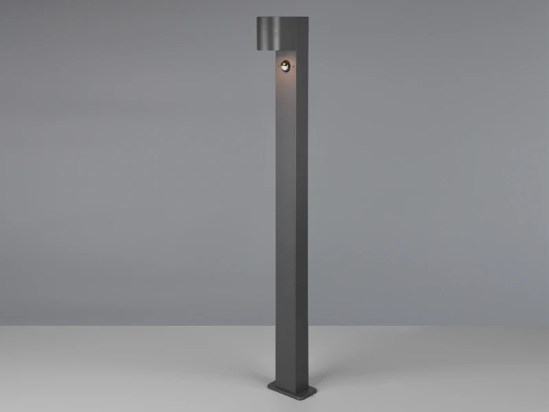 Gefertigt ist die Stehleuchte aus wetterfestem Druckguss Aluminium. Durch die OberflÀche in Anthrazit wirkt sie dabei besonders elegant.