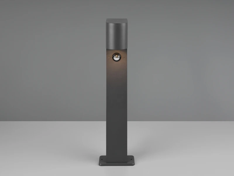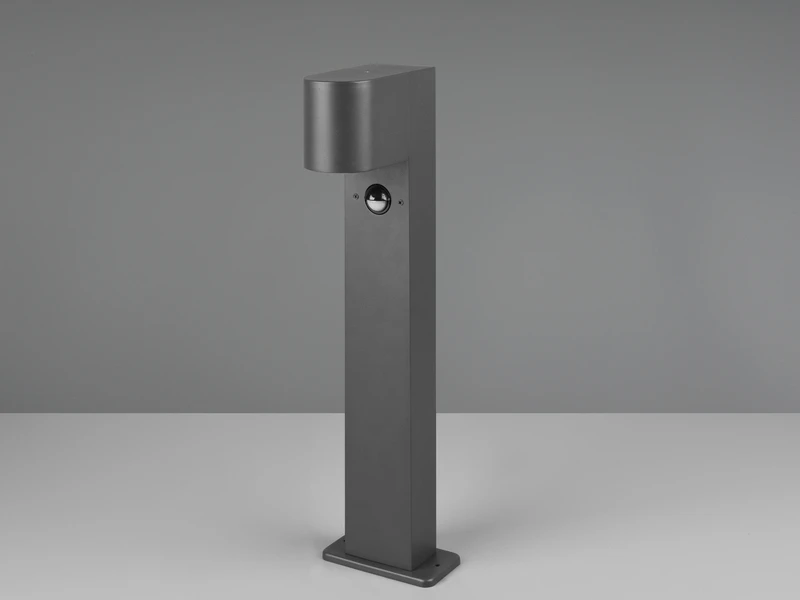Gefertigt ist die Stehleuchte aus wetterfestem Druckguss Aluminium. Durch die OberflÀche in Anthrazit wirkt sie dabei besonders elegant.